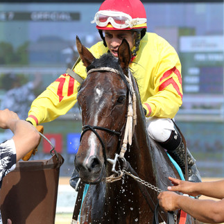 “I got her in mid-January, and it’s easy to train good horses,” said Johnson. “Good horses make everybody look good. She ran huge today. She’s the type of horse that never runs any harder than she has to. I was very happy with the outside post because you can sit out there and adjust way better, especially with horses like her. Plus, you never know what to expect when a horse is coming off a seven-month layoff and going head-to-head with horses that have been running, but she handled it great. I’m happy to have her in the barn.”