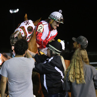 Meet Me Out Back is owned by Jose Meraz. Shawna Manriquez, who came to the winner’s circle from her duties as a pony rider for the evening, oversaw the training responsibilities for Jose Villafranco. Meet Me Out Back paid $18.00 for the win.
