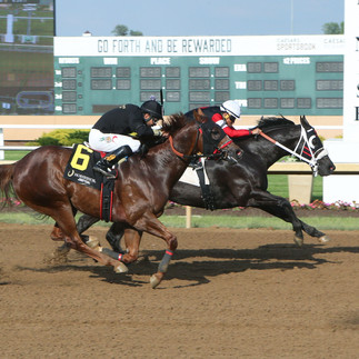 Randy and Gwen Williams of William Racing Stables of LaCenter, Ky. are accustomed to having multiple horses in stakes action at Horseshoe Indianapolis, but it was a different pair side by side in the Overnight Stakes. WRs Moonin Thewagon, now four, has stepped up to join WRs Valentino in the older ranks for the first time this season. They started from posts one and two, respectively, out of the gate and WRs Valentino was a force from the start.